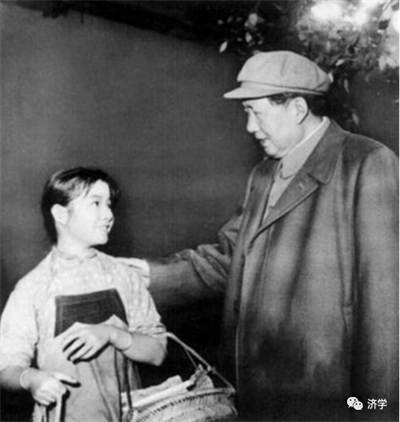毛主席和电影《红孩子》的细妹亲切交流