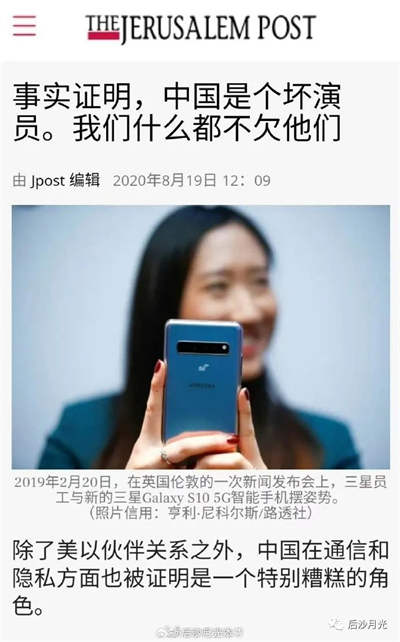 以色列也是摩拳擦掌,2020年8月19日,《耶路撒冷邮报》发表了一篇名为《中国已经被证明是个反派,我们什么也不欠他们》的社评。