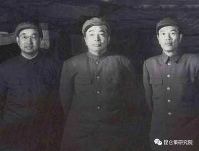 【彭德怀(中)、邓华(右)、陈赓(左)】