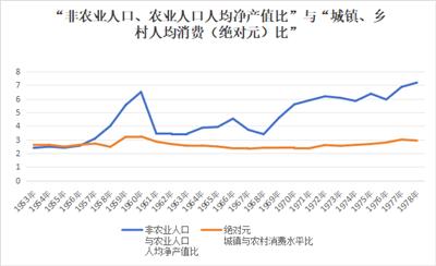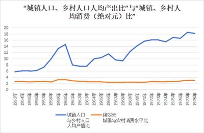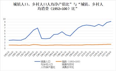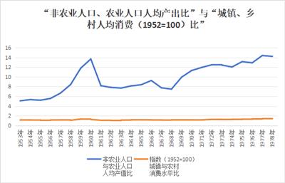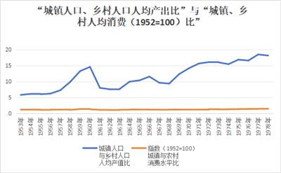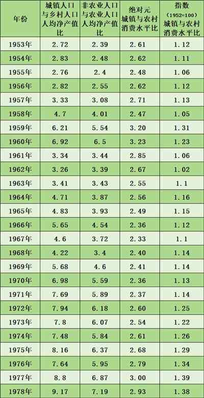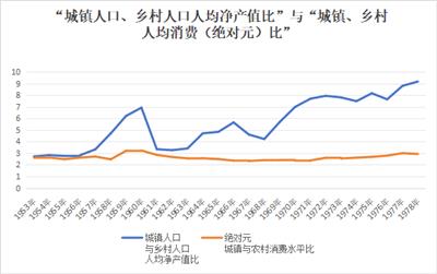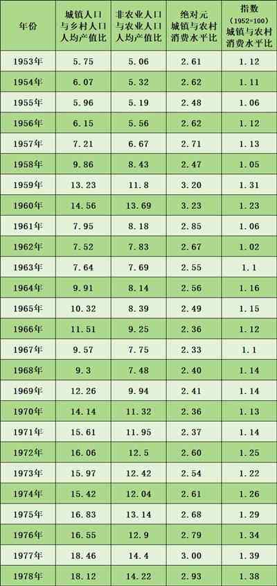 城镇人口与乡村人口人均产值比从新中国初期的3倍、4倍到1975年、1976年的16倍,再到1978年的18倍。