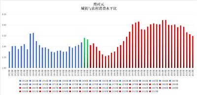 城镇与农村消费水平(绝对元)比=城镇居民消费水平(绝对元)÷农村居民消费水平(绝对元)