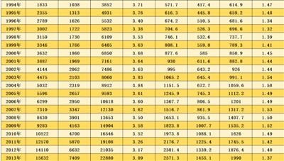 2、非农业人口与农业人口人均产值比=非农业人口人均产值÷农业人口人均产值