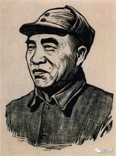 “七大”期间,杨廷宾为朱总司令做的木刻画像