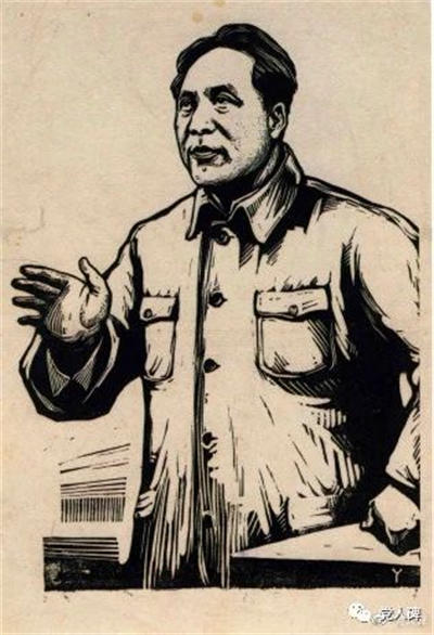 “七大”期间,杨廷宾为毛主席做的木刻画像