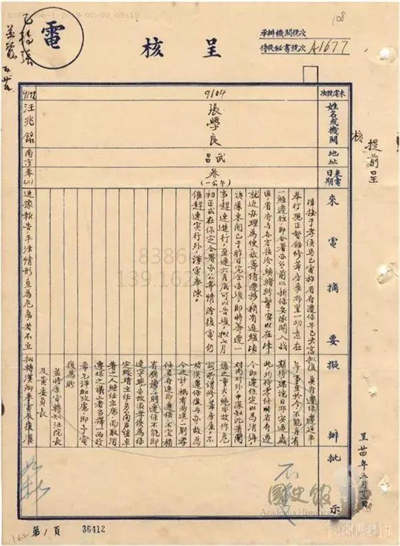 张副司令汉兄勋鉴,瀛眷及尊府家属均已安全离沈。遥深系念。请代慰问。再青岛海军,鄙意可迅予集合塘沽。因在青或恐与日舰发生万一意外,集合塘沽,则在各国军舰监视之下,较为安全。请即酌行。中正,养印。