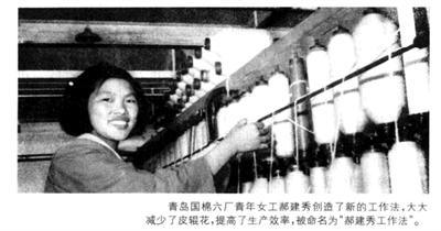 1951年8⽉8⽇国营⻘岛棉纺六⼚⼯⼈郝建秀创造少出⽪辊花的全国纪录。
