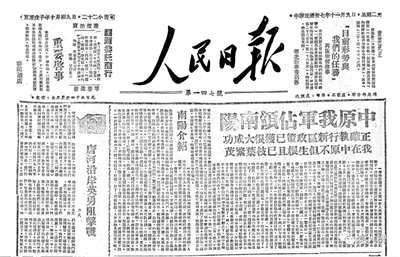 1948年11月9日《人民日报》头版头条《中原我军占领南阳》