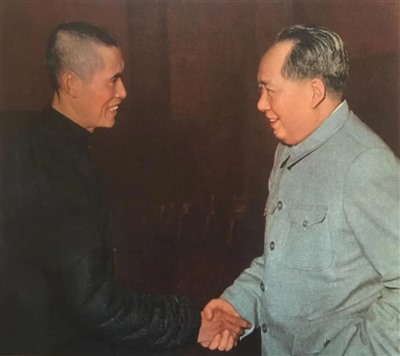 1969年4月,在党的九大上,毛主席与吕玉兰亲切握手