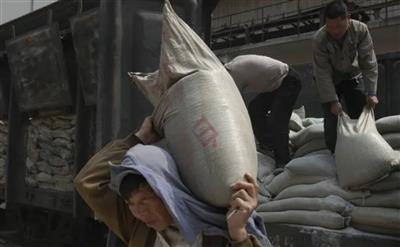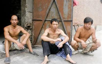 2000年前后,“农民工”在企业装卸化工原料后,坐在厂门口休息