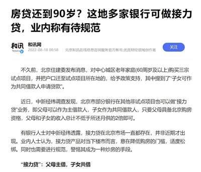 从让没房的老年人贷款买房,子女可共同申请贷款;再到如今切切实实发布“接力贷”的政策,让父母作为主借款人和子女作为共同借款人,一起承担还贷责任。