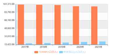 由国家统计数据显示,15-64岁人口已经从2017年的10亿刚出头到2021年的9亿6481万人,减少了四千多万人;65岁以上人口从2017年近一亿六千万人涨到了2021年2亿多人,其增加量也是四千多万人。