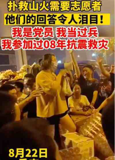 而组成这条长城的,除了消防、武警等专业正规救援力量,还有民间自发组成的志愿者。他们是退役军人、大学生、上班族,他们是男人、女人、老人和孩子,他们不分职业,无关性别,他们用自己的辛劳和汗水,高效编织出一张环环相扣的后勤保障网络,保障了山火扑救的最终胜利。