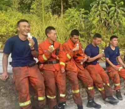 到最后,甚至雪糕、冰可乐都送到了火场之上。
