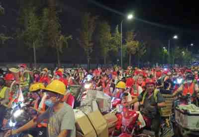然后就是摩托少年们显身手的时刻,那些玩越野摩托的年轻人啊,平时被称为炸街党、鬼火少年,并不怎么受待见,但此刻他们却往背篓里装满物资,义无反顾冲向前线。