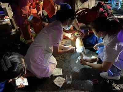 为了应对可能带来的意外,一些医院专门派出了医疗小分队,带上医疗物资,乘坐救护车奔向北碚,提供医疗保障。