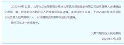 2020年9月18日,北京朝阳检察院发布通报,四方兄弟搬家公司赵某强等6人涉嫌强迫交易罪被依法批准逮捕。