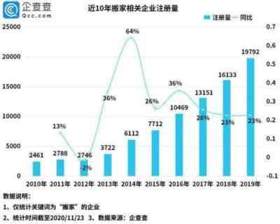 企查查数据显示,截至2020年底,我国共有8.7万家搬家相关企业,仅2019年,新注册搬家企业就达到了近2万家。从地区分布来看,山东以1.05万家企业排名第一,占全国总量的12.1%,广东、江苏分列二三名。