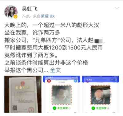除了被敲诈勒索外,还有人因搬家而被骚扰,给人搬个家,搬家公司员工非要跟女客户搞对象。