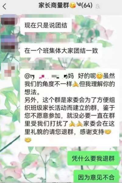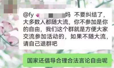 结果就受到了其他家长的指责和围攻:如果不随大流,就自己退群吧。