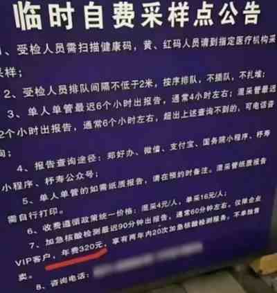昨天下午,赫然看到一条迷惑新闻,郑州一核酸采样点推出VIP服务,年费为320元。