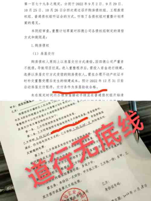 根据今年11月16日西安市灞桥区人民法院的(2018)陕0111破1-7号《民事裁定书》,批准西安四德置业有限公司重整计划草案,终止西安四德置业有限公司重整程序,对购房债权进行债权清偿。清偿方式主要包括房屋清偿和货币清偿。