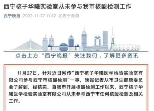 “自我市开展核酸检测工作以来,西宁核子华曦医学检验实验室有限公司从未参与西宁市任何核酸检测及相关工作。”