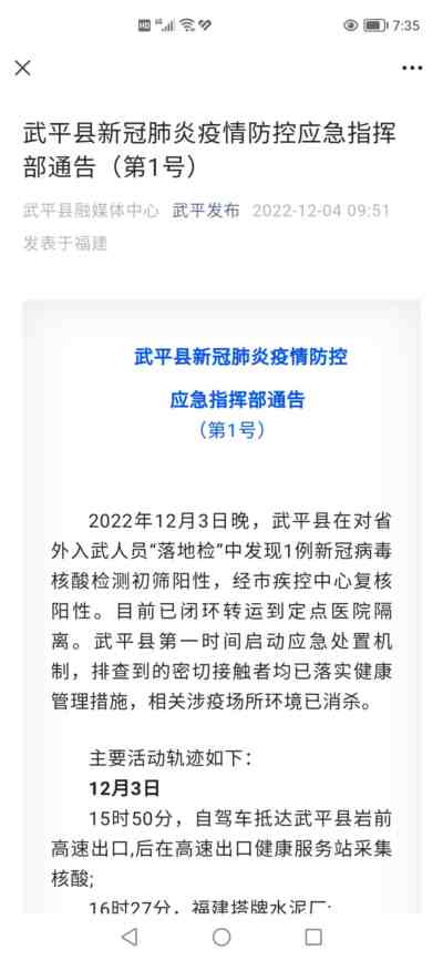 1,近日,闽西几个县区,均出现外省输入病例。因当地坚持了半年的严格常态化防控“落地检”和重点人员检测,实现了“早发现”,疫情在可控范围。但后期未知。