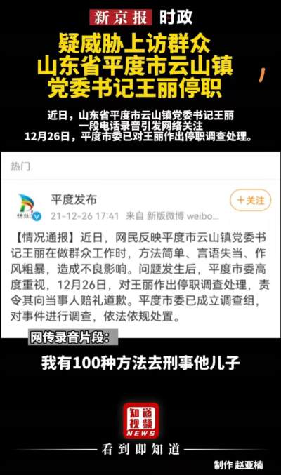 100种刑事方法对付一个上访群众,说这话的人,正是青岛平度市云山镇D委书记王丽。
