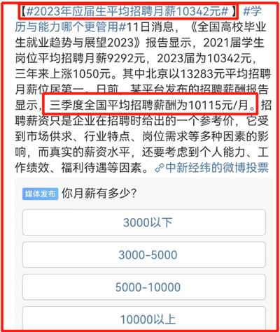 白天在地铁上刷手机,又看到说“报告显示2023应届生平均招聘月薪10342元!”一举拿下近年来的新高。
