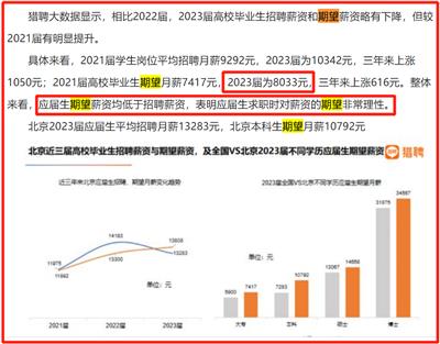 更搞笑的是,招聘平台竟然在就业研究报告中表示“2023界高校毕业生期望月薪为8033”,“期望月薪低于招聘月薪,表明应届生求职时对薪资的期望非常理性。”