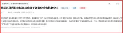 节假期间,有人向惠州市投诉称,当地保利阳光城四期备案价约1.5万/平,最高卖到近1.7万/平,当时开发商捂盘惜售,结果节假期间低价销售。