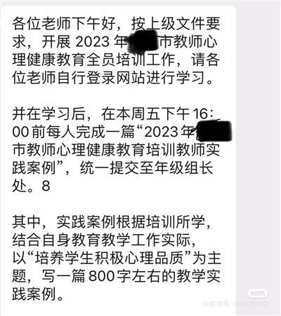 有一些杂情,还可以说与学校的教育和管理有关,但是像催缴医保、关注当地公众号并留言好评,文化户口普查等与教育不想关的活都统统扔给了一线教师。