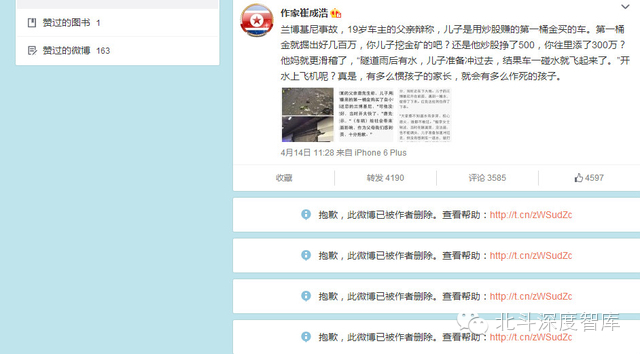 @凤蝶柳:此帐号微博大多为商业广告,常为@作家崔成浩等大V点赞,而其点赞的微博也常被删除。