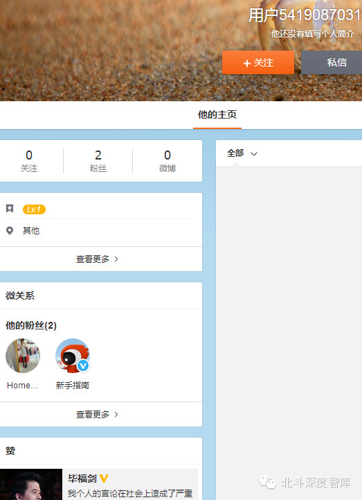 2、人工操作,大量转发、点赞大V的微博,偶尔也发表自己的看法,使人难以辨认;