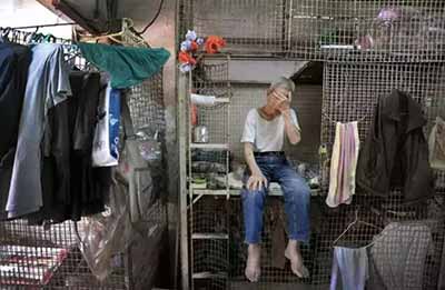 太多太多的工薪阶层,只能常年一家数口挤在“公屋”里。还有太多太多的穷人都挤在“棺材房”中,这些房子在4平方米以下,只能放进一张床,连腿都伸不直。甚至还有一种“笼屋”,它是一张张的三层架子床,外面围上了铁丝网,就像市场里的鸡笼一样,“笼屋”租金甚至要2000多港币。