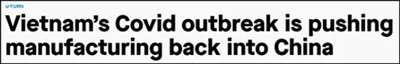 之前许多外企出于劳动力成本和躲避美国对中国商品征收关税的考虑,把产业从中国向越南等东南亚国家转移。但越南疫情导致工厂被迫关门歇业,又迫使许多企业的制造业务向中国回流。