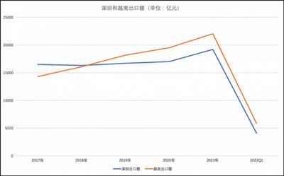 事实上,2019年、2020年、2021年,越南的出口额连续三年超过深圳,这次并不是第一次。