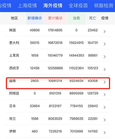 到目前,越南累计确诊病例已经超过1000多万,去年年底曾经达到过日增40万的峰值,在3月中旬,每天新增确诊还有20万人,累计死亡人数将近4.3万多人。至于最近越南每天新增的2000多例,建议大家看看就好。