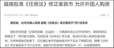 2015年越南修改《住房法》,外国人只要持有合法签证便可在越南买房,大量国外炒房客开始涌入。