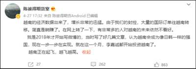 越南出口额超过深圳一事,在网络上掀起了一波不小的讨论。