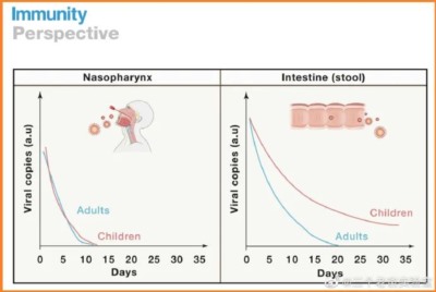 从鼻拭子和肛拭子对照看,鼻拭子成人与儿童转阴时间几乎一样,但肛拭子儿童转阴时间要比成人长得多(成人20天,儿童35天)。