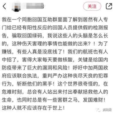 此外还有专门针对境外回国的“生意”,有冒名顶替检测的、有出售提供假“阴性”检测报告的......