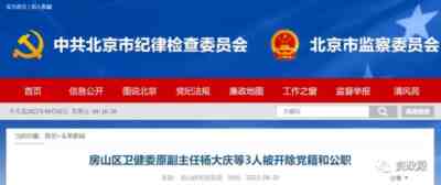 5月29日,北京警方对北京中同蓝博医学检验实验室立案侦查,8人被采取强制措施。 随后,因涉及朴石实验室核酸检测造假案,房山区卫健委原副主任杨大庆、医政科原科长晋长皓、医政科原三级主任科员邢曼3人被立案审查调查。