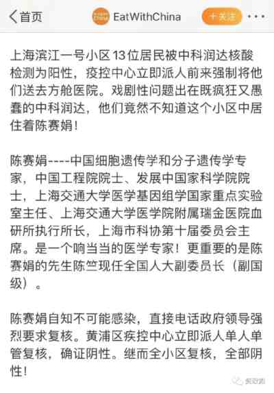 此前,曾有上海市黄浦区五里桥街道鲁班路388号(海悦花园小区)居民在社交平台上表示,5月8日,小区有5位居民的核酸检测结果为阳性,检测机构为中科润达医学检验实验室。后经复核,上述居民核酸检测结果均为阴性。无独有偶,上海出现“假阳性”的小区不止一家。