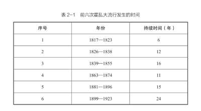 之后,大约每隔几年或者几十年,霍乱疫情就会大暴发一次。目前,霍乱已经发生7次全球范围的大流行,最近一次发生在1961年,从东南亚的印度尼西亚望加锡开始,到现在仍在许多国家流行。但是,第七次大流行的菌株与引发之前六次大流行的经典生物型不同,是霍乱弧菌O1群的另一个类型——埃尔托生物型(El Tor biotype)。