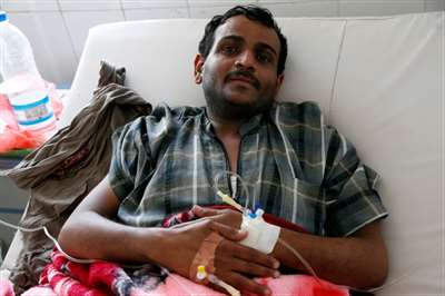 2019年4月15日,也门萨那一家医院,霍乱患者在接受治疗。图|新华社发(穆罕默德摄)
