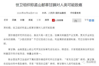 近年来,关于草甘膦作为农药的安全性发生了激烈争议,对于其是否致癌也是风波不断。美国几乎每年都有数百人因遭受草甘膦侵害致癌而起诉孟山都。