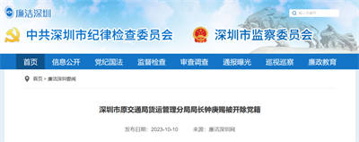 据廉洁深圳网10月10日消息,日前,深圳市纪委监委对深圳市原交通局货运管理分局局长钟庚赐严重违纪违法问题进行了立案审查调查。