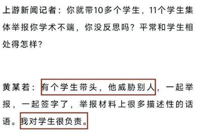 从黄教授的回应不难看出,他的回应明显在回避一些关键问题:既没有公开回复材料,也没有将材料交给学校,只是强调学生举报内容不实、有一名学生威胁其他人。