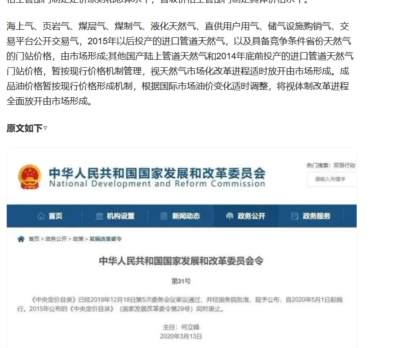在“管住中间、放开两头”的产业改革总思路下,天然气定价机制近年经历了多次改革,标志性拐点是国家发改委在2020年3月发布了新版《中央定价目录》,将天然气门站价格由目录移出至附注,并提出“具备竞争条件省份天然气的门站价格,由市场形成”。新版目录附注规定,LNG、海上气、页岩气、煤层气等气源价格由市场定价,国产陆上气以及2014年之前进口气价格,仍按政府规定的门站价执行。明确上游气源价格部分放开。